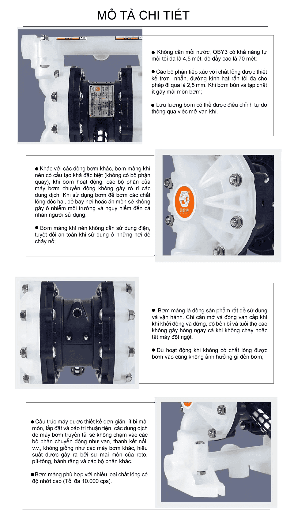 Bơm màng hóa chất GODO QBY3-25 Nhựa PP