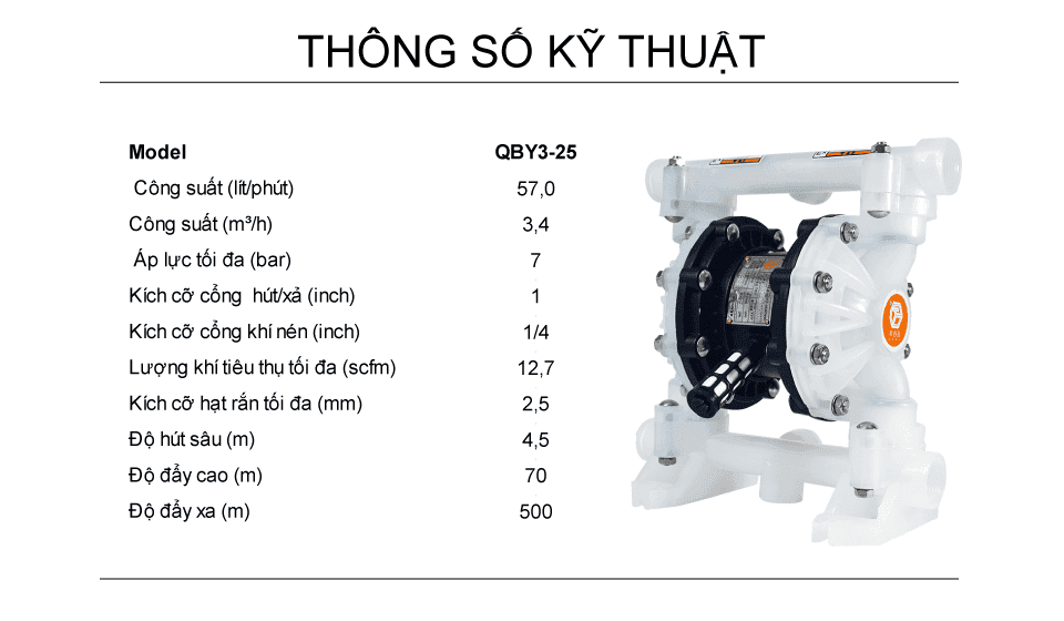 Bơm nước thải hóa chất GODO QBY3-25 Nhựa PP
